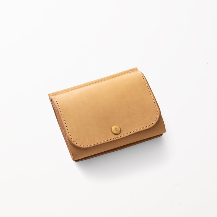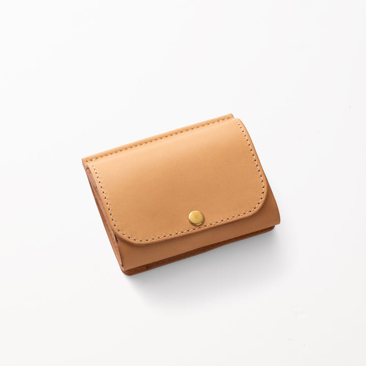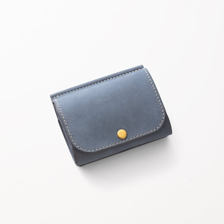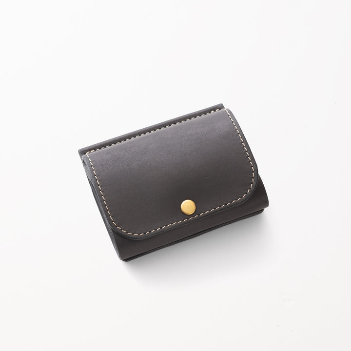 お札・小銭・カードが収納できるコンパクトな財布。ダブルフラップの構造で、片面にカードスロット2段とコインポケット、もう片面にお札入れとなります。