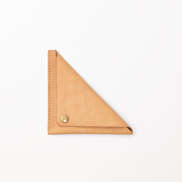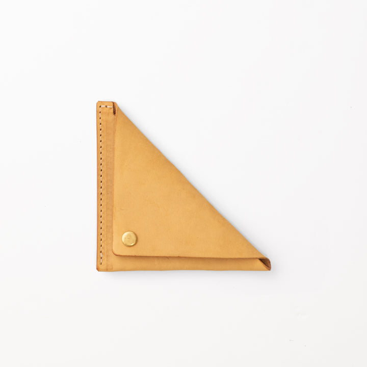 さんかくの小銭入れ。間口が広いので取り出しやすく、ポケットの角に入り込むカタチなのでポケットへの収まりもいいです。フラップも2重になってるのでコインがこぼれることがありません。コインに揉まれて革が柔らかくなっていくのも楽しみなコインケースです。(もちろんコイン以外の小物入れとしても)