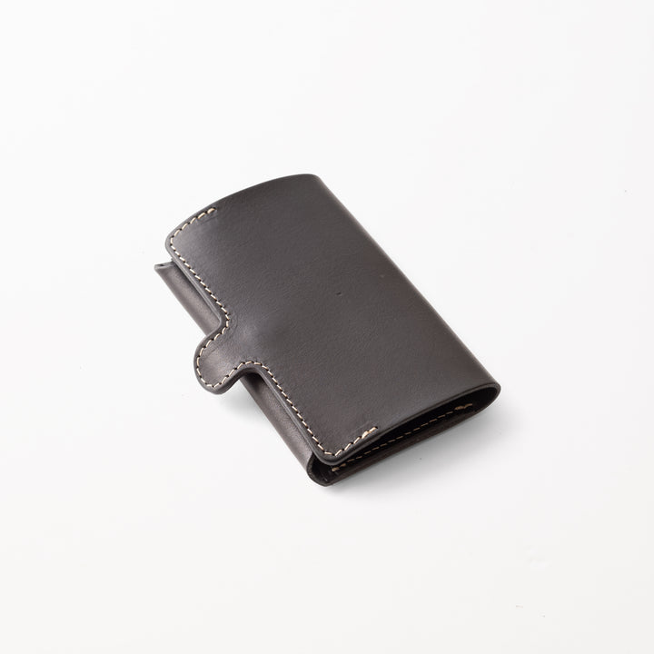 小銭入れ付きカードケース。内部背面側にカードポケットがあり、10枚程のカードを収納。フラップを開けた手前に、ボックス型で視認性に優れた小銭入れ。